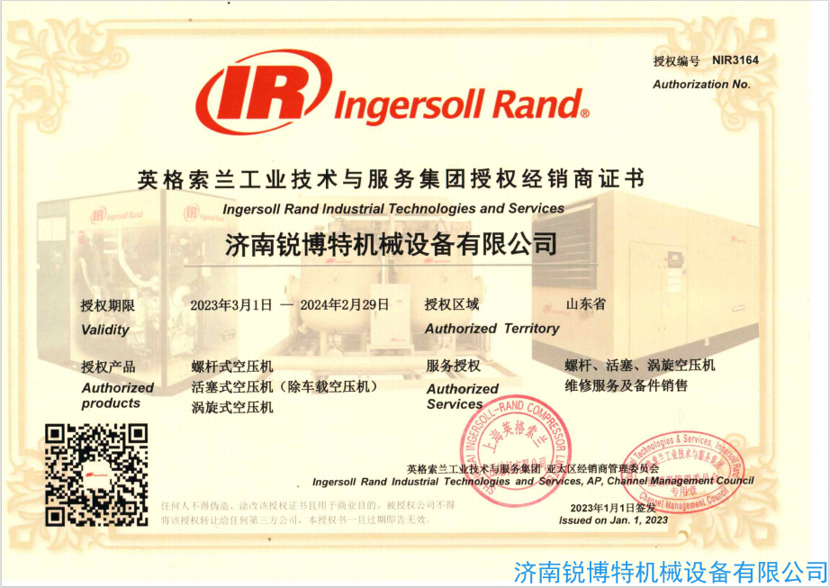 濟南銳博特機械設備有限公司是英格索蘭空氣壓縮機的授權代理商,代理銷售美國英格索蘭全系列的空壓機及后續處理設備。公司自成立以來,經過公司全體同仁不斷努力,開拓創新,以優良的技術、完善的售后服務,使得公司贏得...[更多]